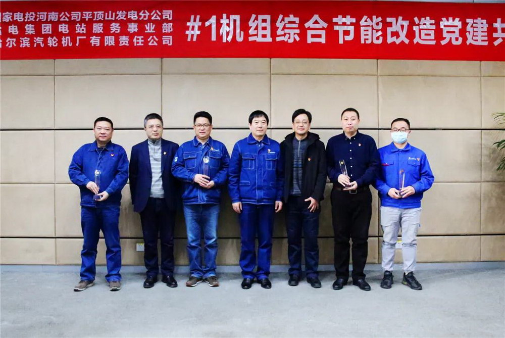 12月23日上午,平顶山1号机组综合节能改造党建共建表彰大会在平顶山发电分公司召开,生产部党支部、采购部党总支第二党支部荣获“先进党支部”荣誉称号,哈电汽轮机平顶山改造项目临时党小组、主机分厂党总支第一党小组、重装分厂党总支第二党小组荣获“先进党小组”荣誉称号,公司职工孔令福、葛丹、姜云涛、朱彦东、厉彦会、张志伟等同志荣获“优秀共产党员”荣誉称号。哈电汽轮机副总经理刘志强出席会议并讲话。