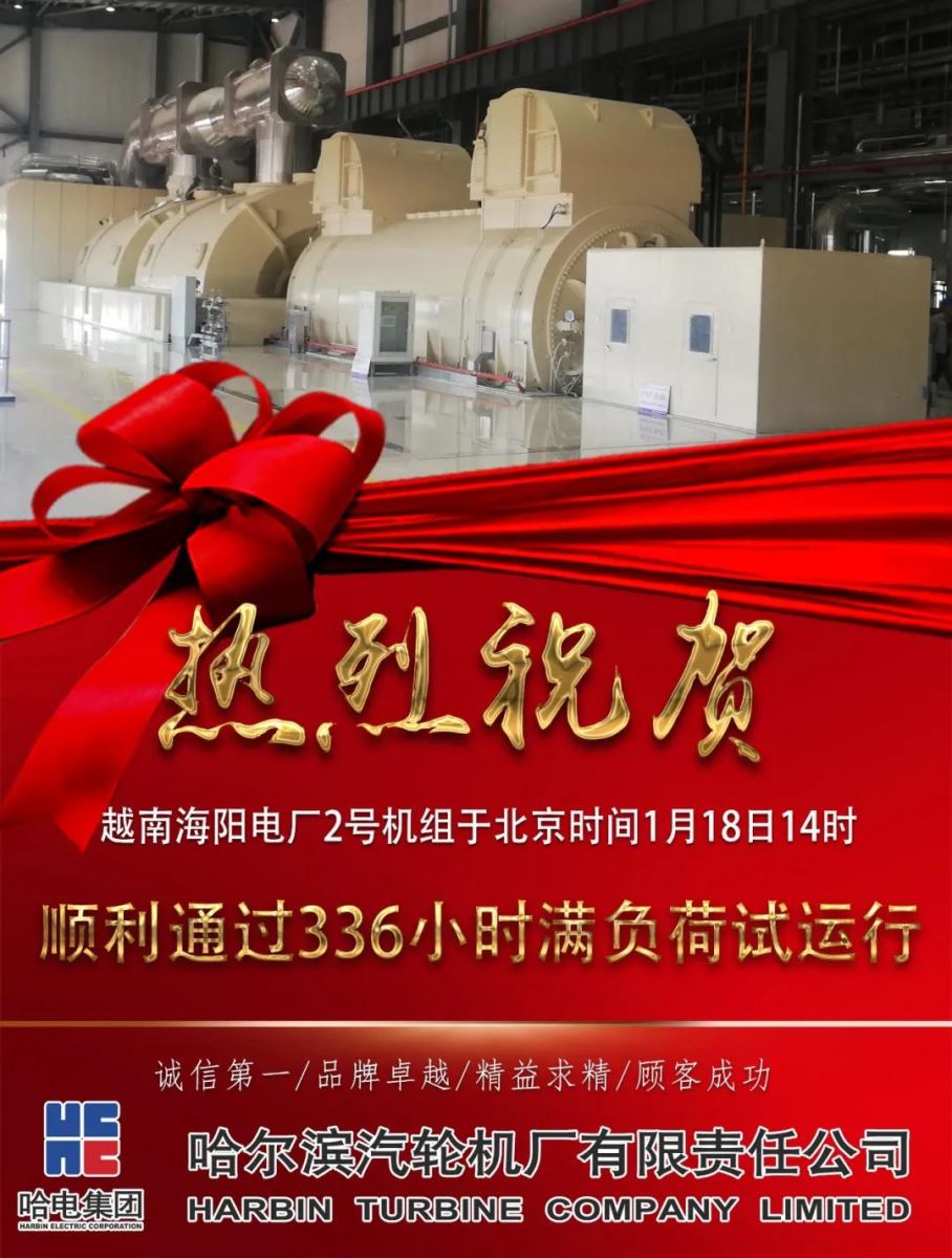 越南海阳电厂2号机组顺利通过336小时试运行 2021-01-18 1480 字号 迈入2021年,哈电汽轮机承制的海外项目通过满负荷运行试验,迎来项目服务开门红! 北京时间1月18日14时,越南海阳电厂2号机组顺利通过336小时试运行,期间机组工况稳定,各项参数优秀。 返回 上一篇2021-01-21电站服务市场捷报频传 哈电集团连获两项汽轮机通流改造项目 下一篇2021-01-16哈电汽轮机六届一次职工代表大会暨2021年度工作会议隆重召开 公司热闻