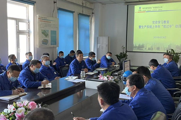 为确保完成“双过半”各项任务指标,4月28日,哈电汽轮机生产系统召开党史学习教育暨生产系统“双过半”动员会,副总经理化广宇出席会议并讲话,会议由生产部党支部书记、经理庄乾兴主持。 会议指出,当前正是公司转型发展的关键时期,全体干部职工要从党史学习教育中提振信心,汲取力量,要发扬自力更生、艰苦奋斗的“延安精神”,坚决贯彻执行“以客户为中心、以奋斗者为本,长期坚持艰苦奋斗”的发展理念,通过党史学习,真正做到悟思想、开新局、办实事。 会议强调,生产系统各单位要提高政治站位,增强大局意识,坚决避免本位主义。要增强信心,解放思想,不断创新,挖掘潜能,提高内部管理水平。各生产分厂要以计划为纲,发挥主体责任,坚持系统观念,加强协调沟通。要注重设备保障,为生产保驾护航,确保完成“双过半”任务。 会议还对节前安全检查工作进行了部署。 各单位党政负责同志、生产厂长和技术厂长参加会议。