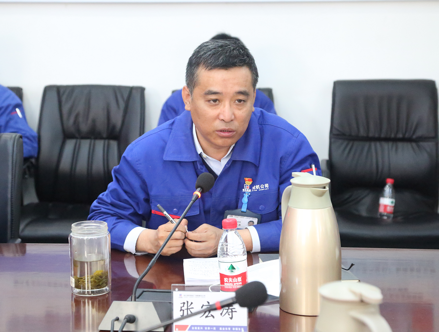 副总经理张宏涛从火电汽轮机提效、明确公司低碳研发部门职责、加大低碳产品研发激励机制政策、提升技术研发部门人员配备等几个方面进行中心发言。