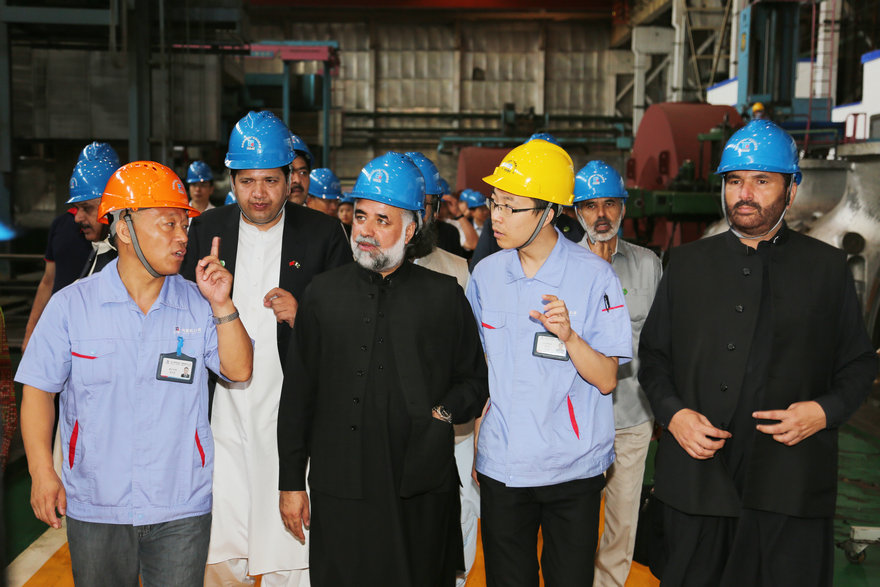 7月18日,巴基斯坦国民议会副议长穆尔塔扎·贾维德·阿巴希一行应全国人大常委会邀请,对黑龙江省经济社会发展情况进行调研。在哈电集团哈尔滨汽轮机厂有限责任公司调研期间,哈汽公司副总经理李长宝接待了来访客人并陪同参观了三分厂生产现场,详细介绍了公司生产制造能力和经济发展情况。