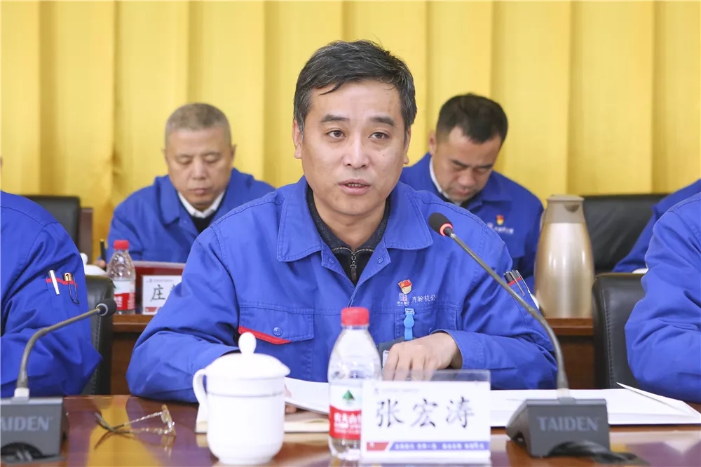 副总经理张宏涛传达集团公司一届二次职工代表大会暨2020年度工作会议上斯泽夫同志的讲话精神,宣读《关于表彰2019年度先进单位和先进个人的决定》